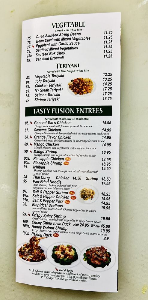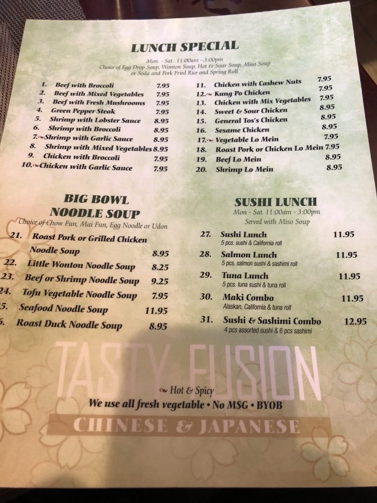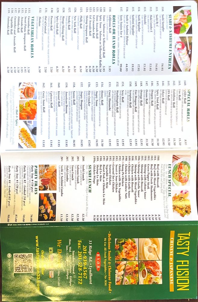 Tasty Fusion, located in Lyndhurst, NJ, offers a fusion of Chinese and Japanese cuisine with a wide range of vegetarian options. Known for its delicious dishes and generous portions, customers rave about the fresh sushi, flavorful rice dishes, and quality meats. The menu includes favorites like the orange roll, crazy hamachi roll, kani salad, and Alaskan roll with spicy mayo. Reviewers praise the attention to detail, such as separate containers for soy sauce allowing for customizing flavors. The casual setting is perfect for groups, families, or a quick lunch or dinner. With convenient delivery, takeout, and reservation options, Tasty Fusion ensures a delightful dining experience with excellent service and a welcoming atmosphere. A must-try for lovers of Asian cuisine seeking a unique and satisfying meal.